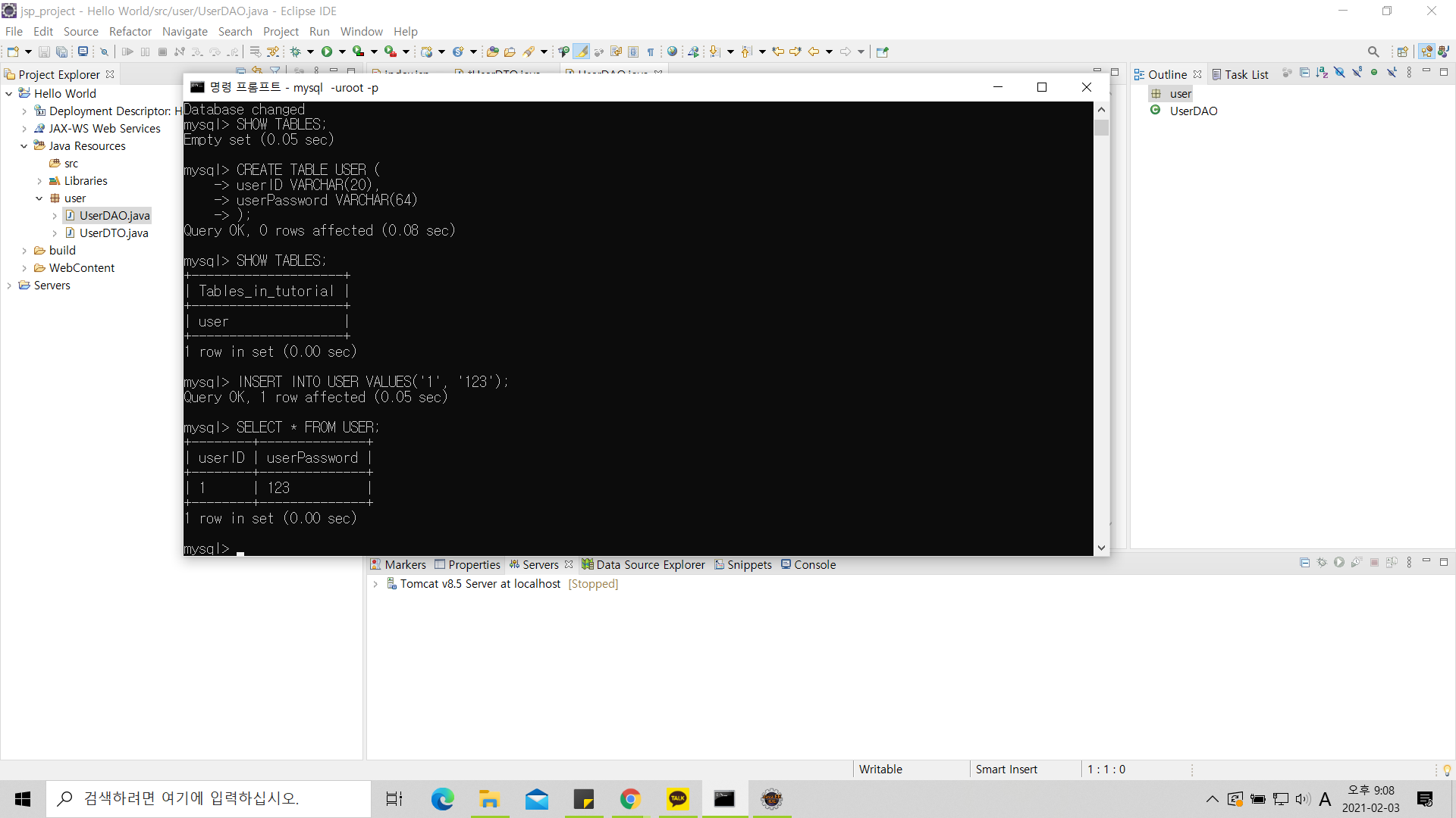 1. 일반적으로 데이터베이스와 연동할 때는 DTO와 DAO를 만든다.