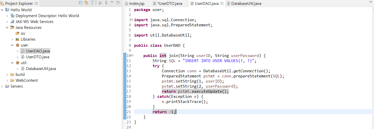 이제 이것을 DAO 클래스에서 사용할 것이다.
