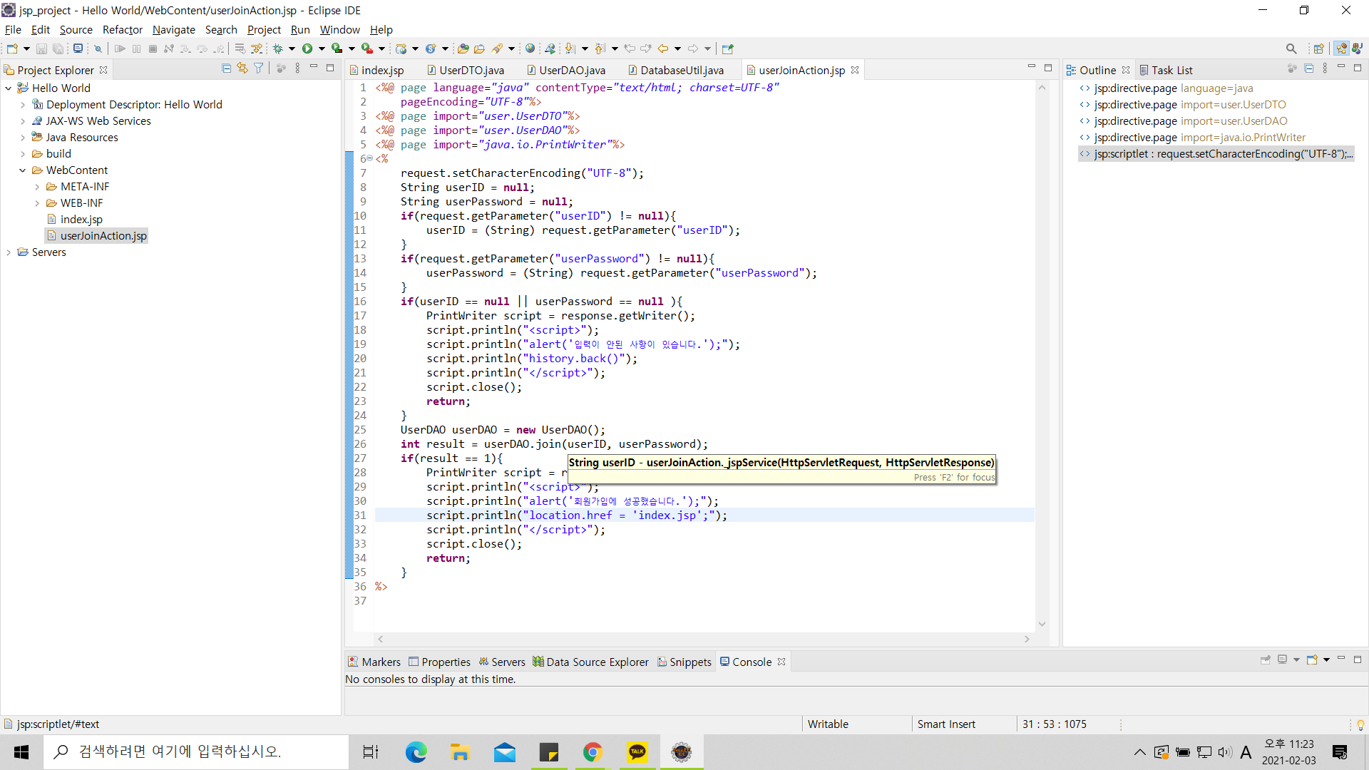이제 uerJoinAction.jsp를 만들어 볼 차례이다.