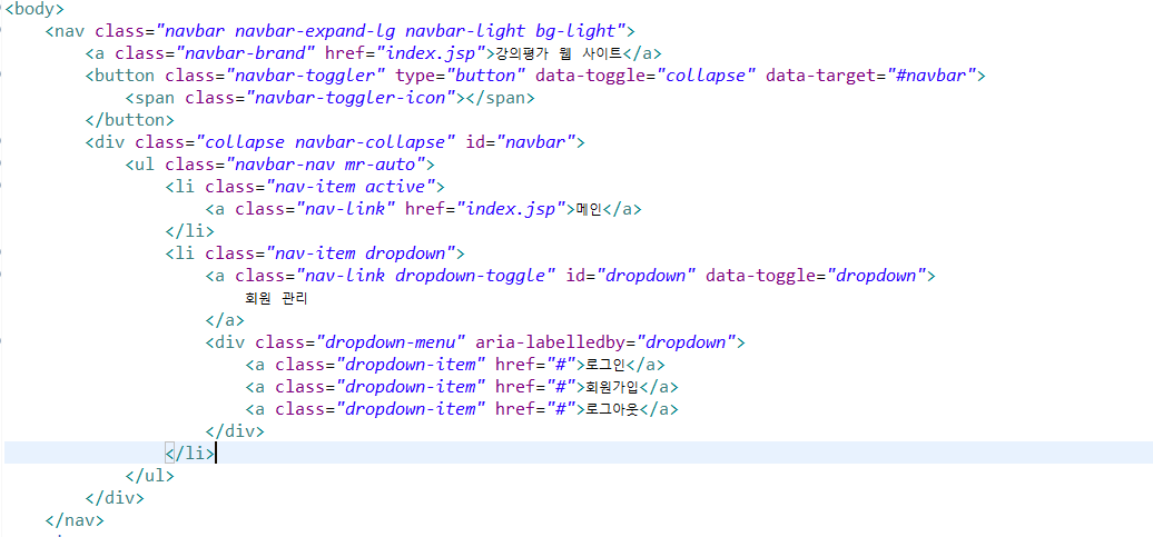 navbar는 기본적으로 bootstrap이 제공하는 클래스 중하나, bg=background
