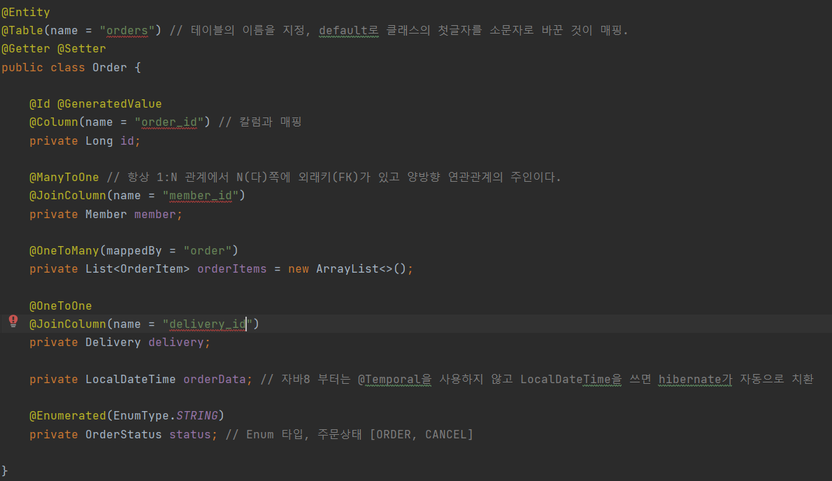 - Order.delivery를 ORDERS.DELIVERY_ID 외래키와 매핑