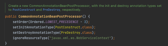 javaDoc를 읽어봐도 알 수 있듯이 하나는 초기화 이전의 후처리기이고 다른 하나는 초기화 이후의 후처리기이다.- 여기 말하는 초기화는 객체 생성 이후를 의미한다.(쉽게 말해